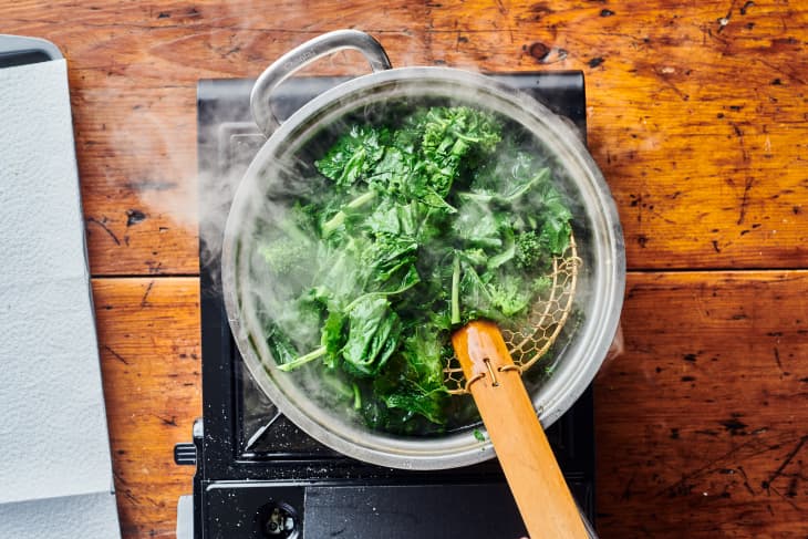 Once you find some broccoli leaves, it's time to cook them.